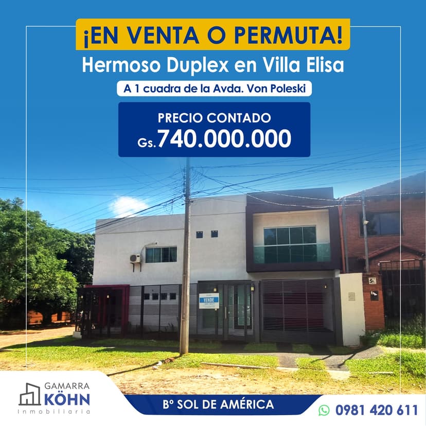 Hermoso Dúplex - Villa Elisa, 3 hab. (1 de ellas en suite), Barrio Sol de América, a 1 cuadra Burger King y la Av. Von Poleski.